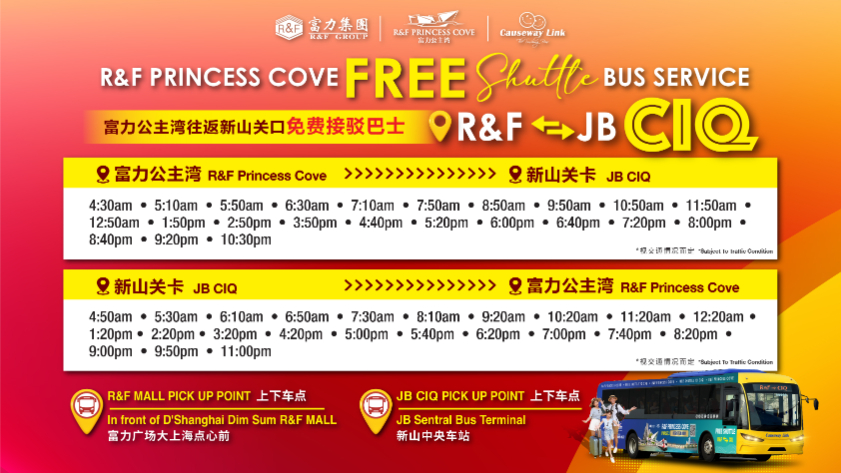 R&F Princess Cove Free Shuttle Bus Schedule to JB Checkpoint