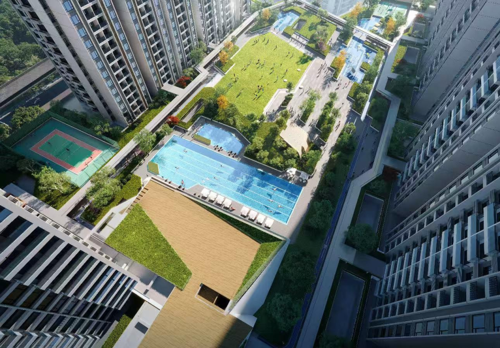 At its heart lies the Urban Sky Park — an elevated leisure sanctuary featuring a 50-metre Olympic-length pool, tennis and basketball courts, an indoor badminton hall, and a jogging track — all designed to inspire an active, balanced lifestyle above the city skyline.